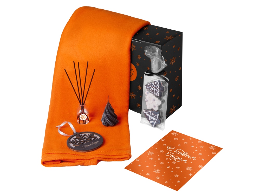 Подарочный набор с пледом, свечой и диффузором, оранжевый