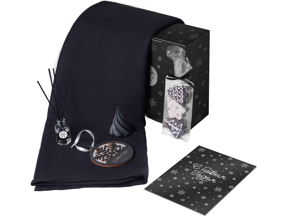 плед - флис 100% полиэстер; подвеска - березовая фанера; открытка - бумага; мешок - нетканый материал (спанбонд)