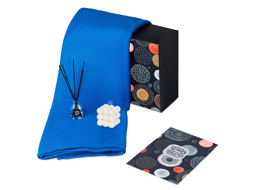 Подарочный набор с пледом, свечой и диффузором, синий