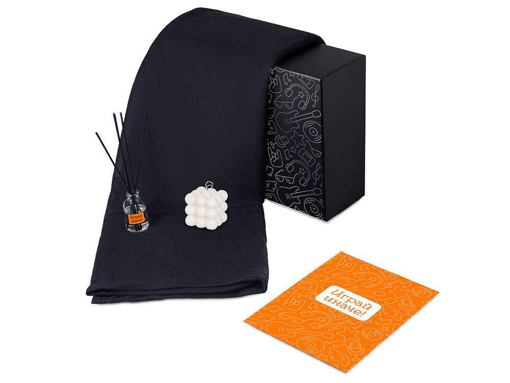 плед - флис, полиэстер, диффузор - стекло, свеча - 90% парафин очищенный, 10% соевого воска, фитиль хлопковый, миндаль - пластик, мешок - нетканый материал (спанбонд), коробка - картон