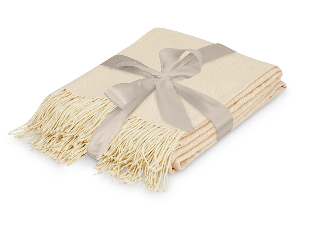 Большой размер этого мягкого плотного пледа позволяет использовать его как одеяло и как покрывало, украшающее интерьер. По бокам плед украшен бахромой. В комплекте идет упаковочная серая лента, на которой можно сделать нанесение.