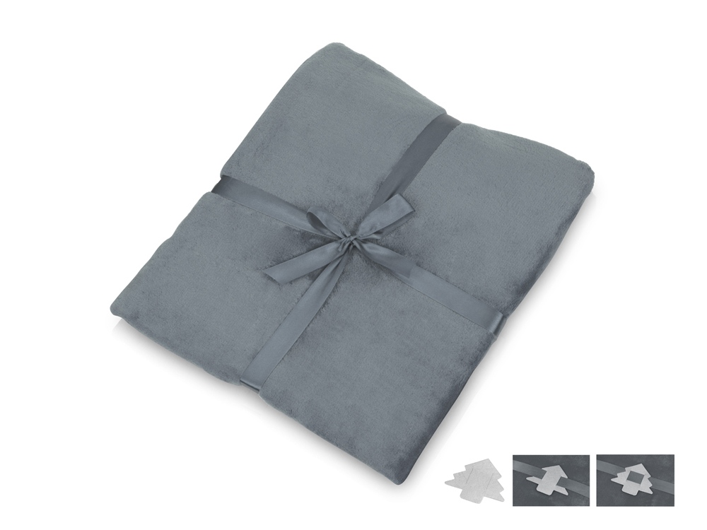 Плед флисовый Natty из переработанного пластика с новогодней биркой, серый