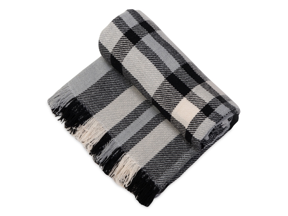 Плед Liner с бахромой, 140*205 см., серый с черным