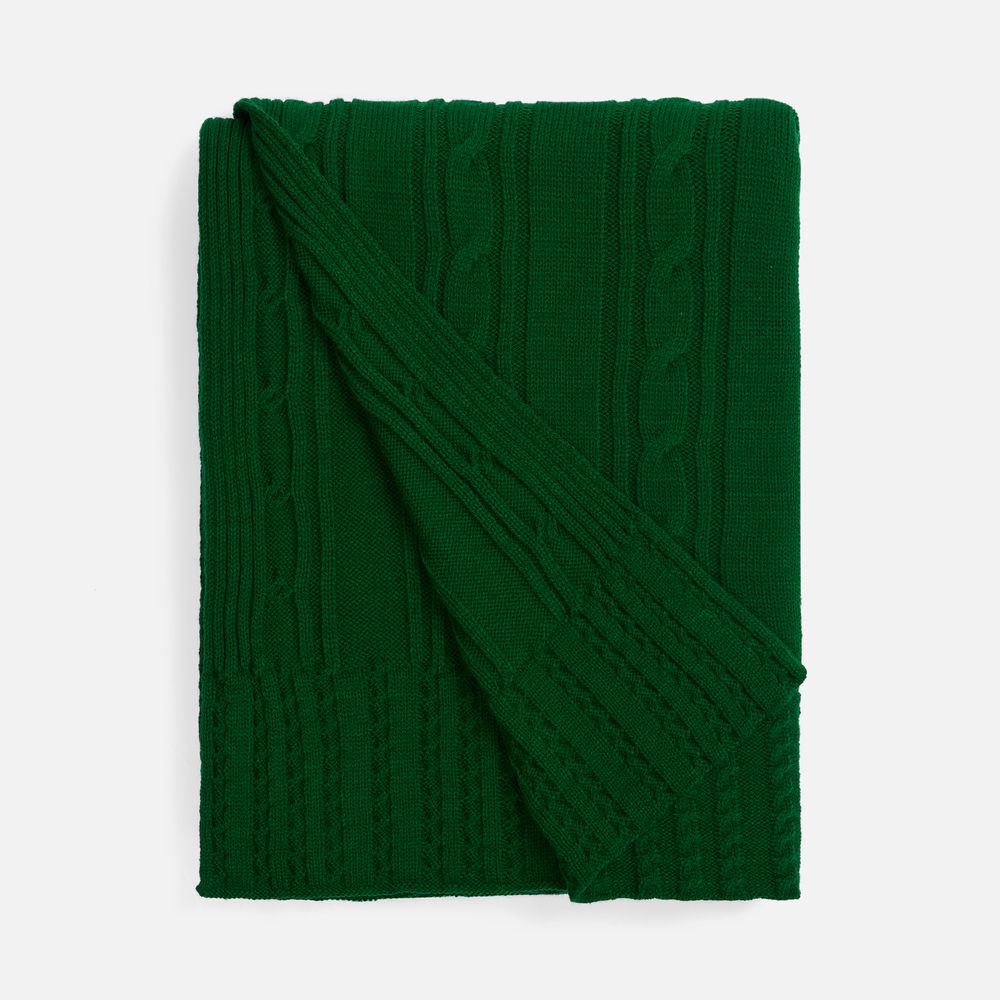 Тонкое переплетение вертикальных кос-жгутов создает благородный стиль, где простота линий встречается с изысканной рельефной текстурой. Плед из мягкого акрила сохраняет тепло, оставаясь удивительно легким и воздушным.