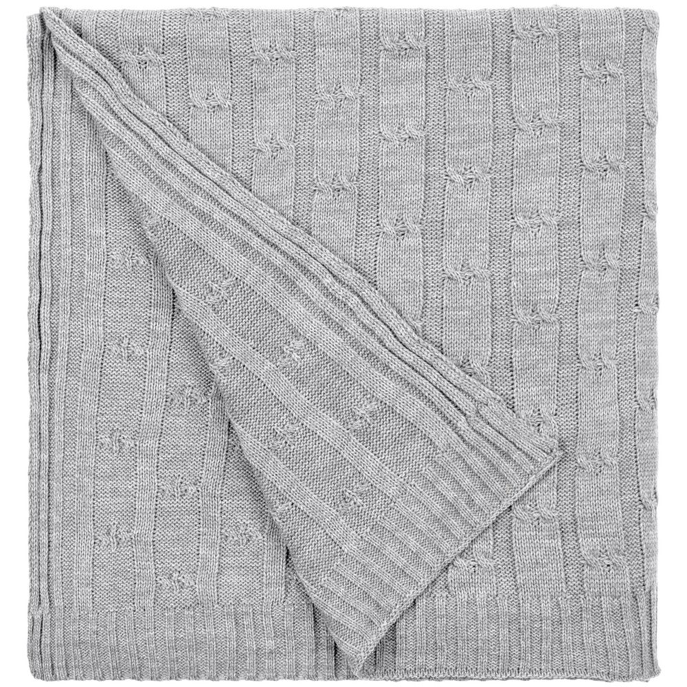 Вязаный плед фактурной вязки из меланжевой пряжи.