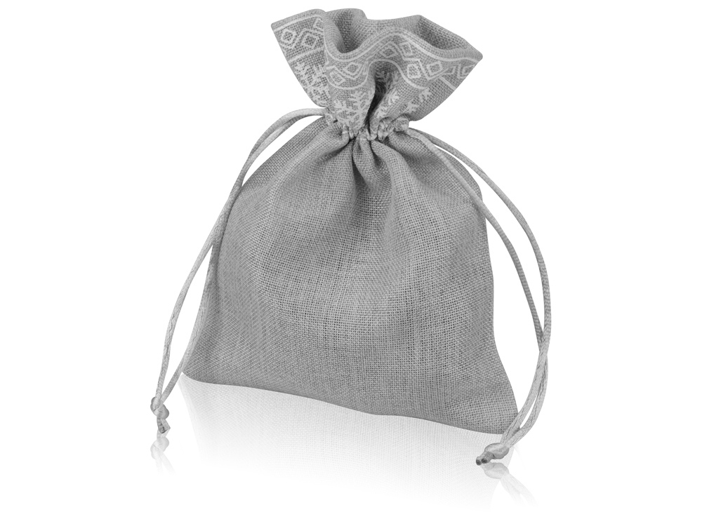 Мешочек подарочный новогодний, хлопок, средний, серый