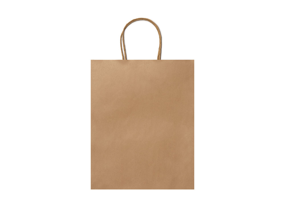 Бумажный пакет 110 г/кв.м натуральной отделки с усиленными короткими ручками витого дизайна.