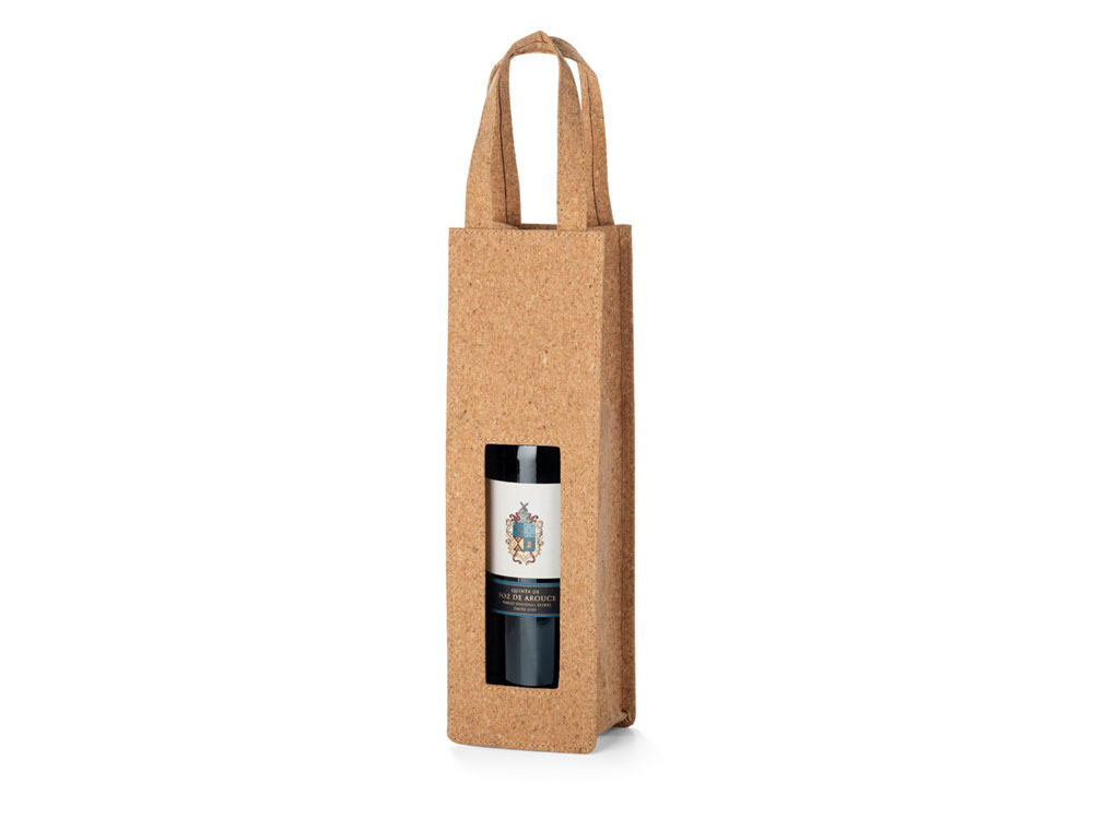 Сумка из натуральной пробки для 1 бутылки. Экологичная сумка с 2 ручками и окошком спереди, идеально подходит для подарков. 100 x 330 x 100 мм.