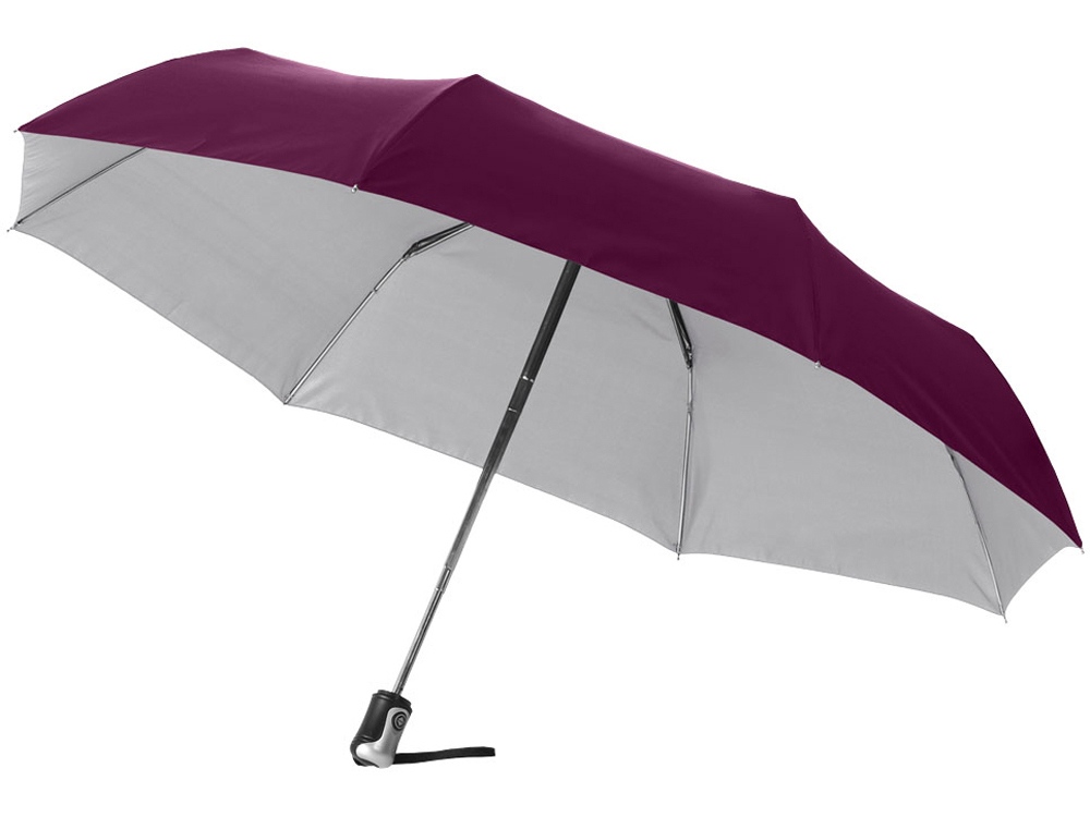 Зонт Alex трехсекционный автоматический 21,5, бургунди/серебристый (Р)