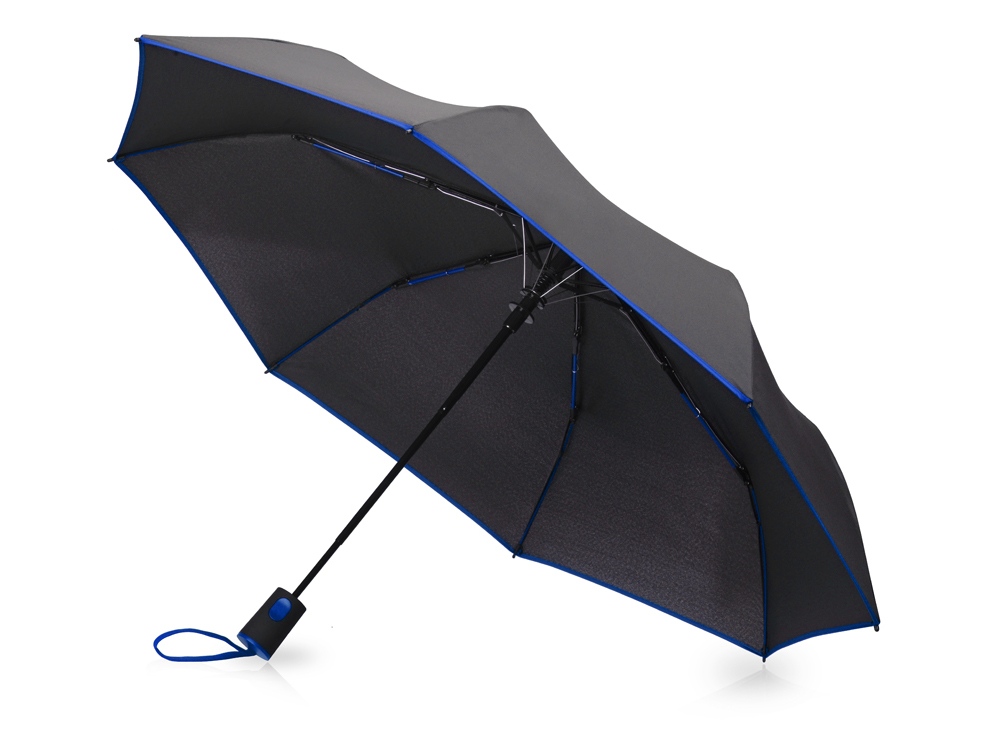 Зонт-полуавтомат складной Motley с цветными спицами, черный/синий