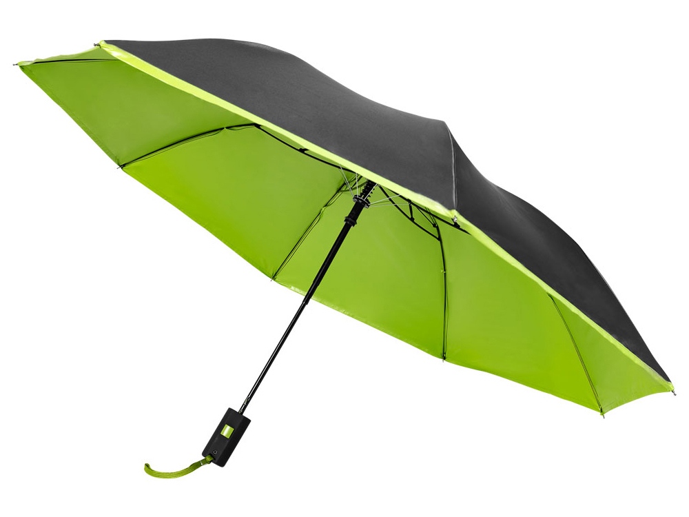 Зонт Spark 21 трехсекционный двуцветный. Зонт с металлическими спицами и стержнем. Двуцветный купол из полиэстера и ручка в цвет, стропа на руку, чехол в комплекте. В сложенном виде - 25 см. Полиэстер.