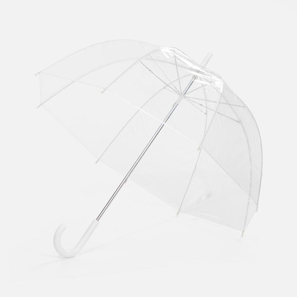 Прозрачный зонт-трость Clear — это стильный и практичный аксессуар, который защищает от дождя, не скрывая окружающий вид.