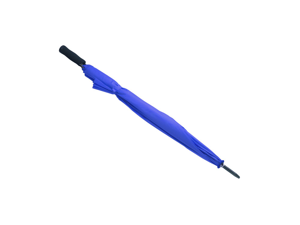 Зонт с кнопкой автоматического открытия размера XL с ручкой, стержнем и наконечниками черного цвета. Длинные стекловолоконные спицы. Ручка из EVA. 130 см в диаметре.