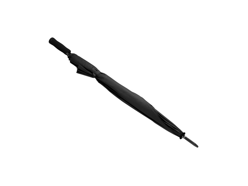 Зонт с кнопкой автоматического открытия размера XL с ручкой, стержнем и наконечниками черного цвета. Длинные стекловолоконные спицы. Ручка из EVA. 130 см в диаметре.