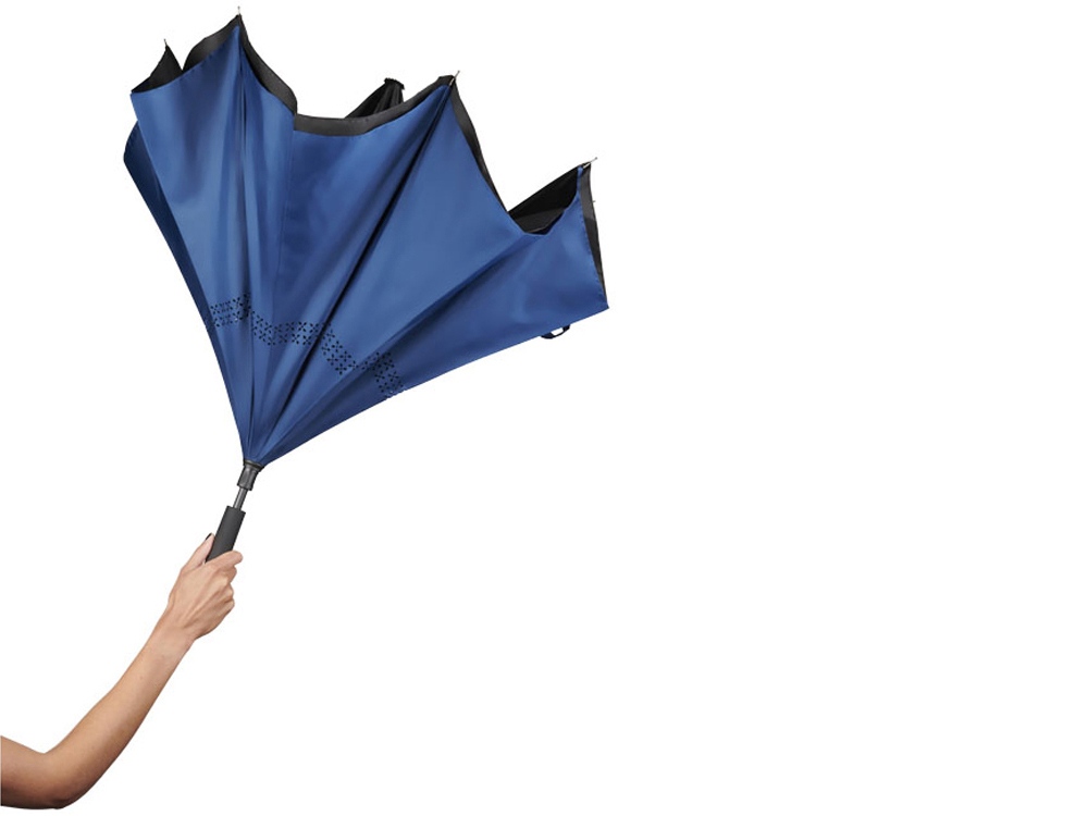 Зонт Lima 23. Зонт 23 выполнен в инновационном дизайне с обратным сложением. Складывается внутрь таким образом более удобен в использовании, например во время посадки в машину при складывании вода остается внутри. Зонт может самостоятельно стоять в сложенном состоянии, что позволяет воде стекать и сушиться. Ветрозащитный со спицами из стекловолокна. Открывается вручную при помощи кнопки и фиксатора. Двойной купол из полиэстера с чехлом в цвет. 190Т полиэстер эпонж. Трафаретная печать (1 цвет (цветные изделия)) на данный товар осуществляется бесплатно. Оплачивается только настройка оборудования в размере 8200 рублей на весь тираж.