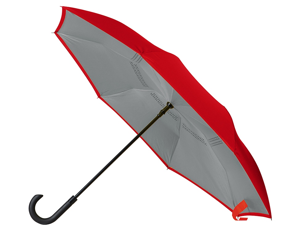 Зонт-трость наоборот Inversa, полуавтомат, красный/серый (Р)