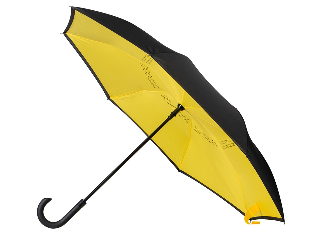 Зонт-трость наоборот Inversa, полуавтомат, черный/желтый (Р)