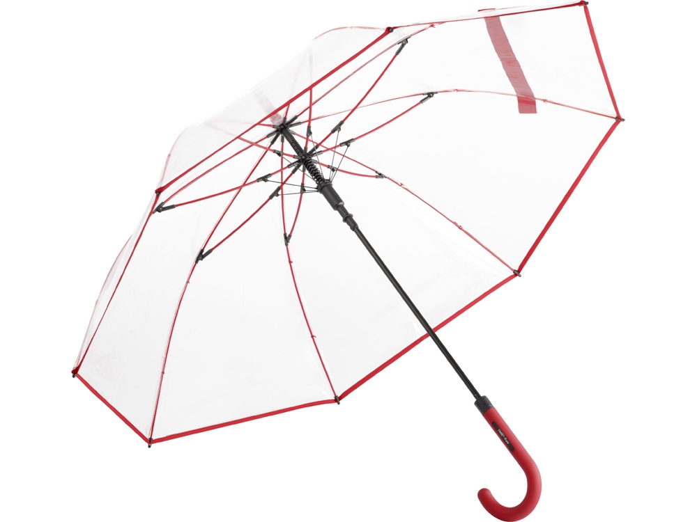 Зонт-трость 7112 Pure с прозрачным куполом, полуавтомат, прозрачный/красный