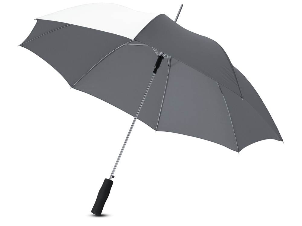 Зонт Tonya 23 с автоматическим открытием с металлическим стержнем, металлическими спицами и ручкой EVA. Белая секция для привлекательного нанесения. Полиэстер.