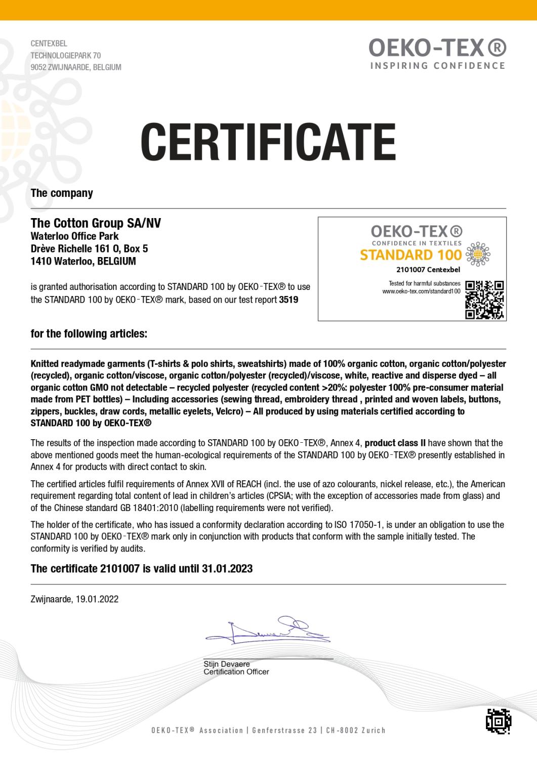 В нашем каталоге с пометкой о прохождении сертификации OEKO-tex 100 представлены отдельные модели одежды трех поставщиков — это бренды Sol’s, B&C и James Harvest Sportswear.